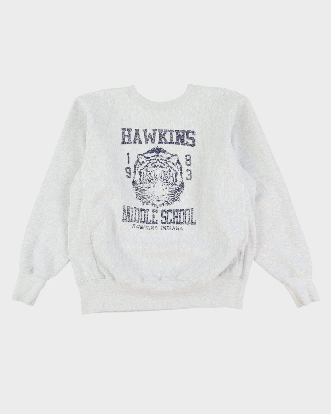 Stranger Things Hawkins Indiana Middle School Grey Made In USA Heavyweight Sweatshirt - L