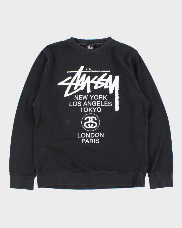 Vintage Stussy Made In US World Tour Big City Distressed Crewneck Sweatshirt - L