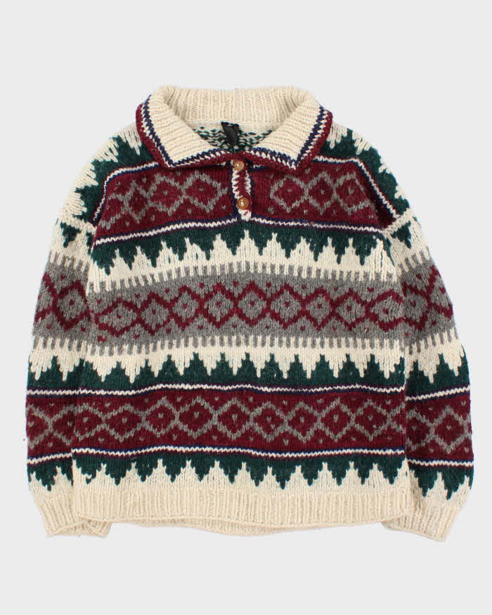Vintage Super Chunky Knit Quarter-button Jumper - L