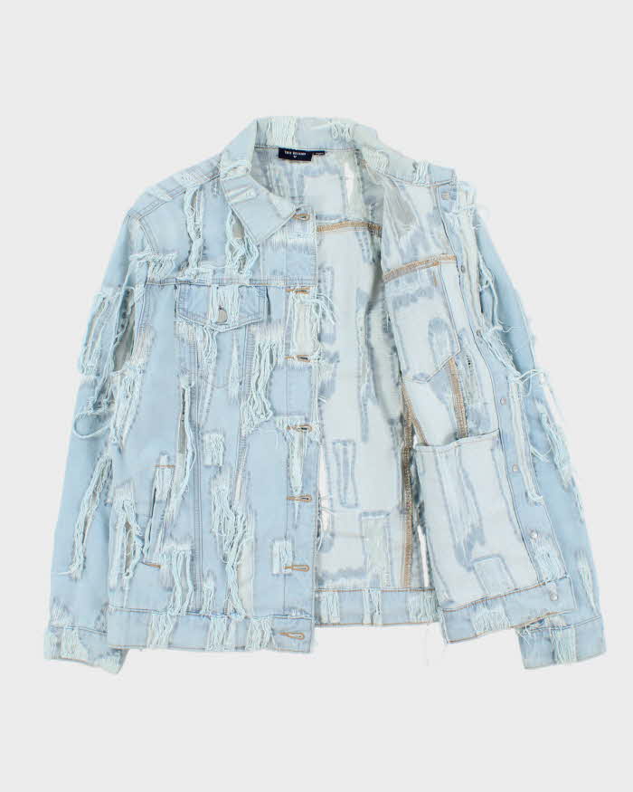 Vintage True Religion Frayed Sheer Light Wash Denim Jacket - L