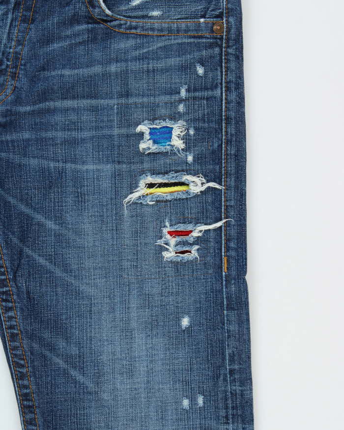Vintage True Religion Ricky Flap Navajo Patch Distressed Straight Leg Jeans - W36 L34