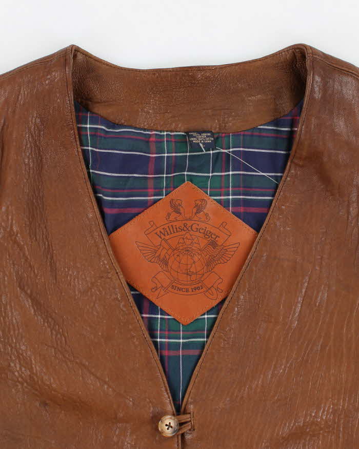 Vintage Willis & Geiger Brown Leather Hunting Vest - L