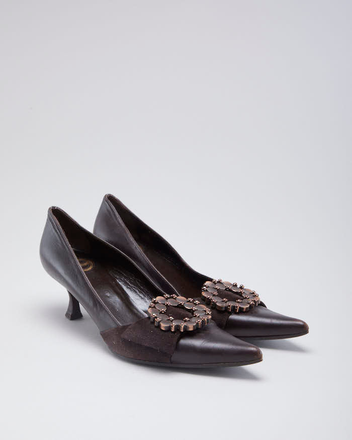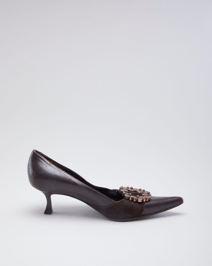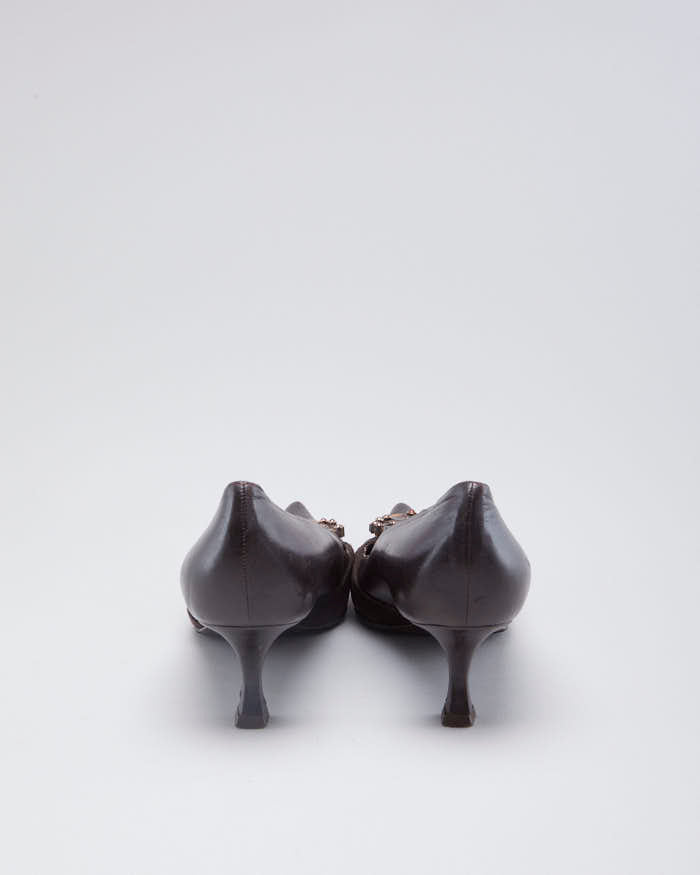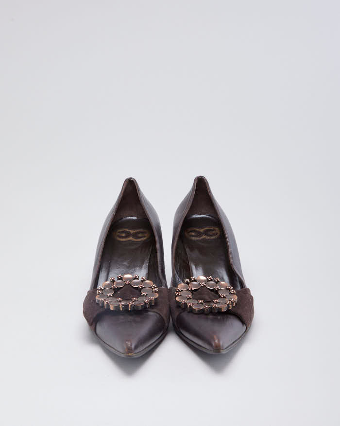 Vintage Woman's Brown Escada Leather Kitten Heels - UK ^