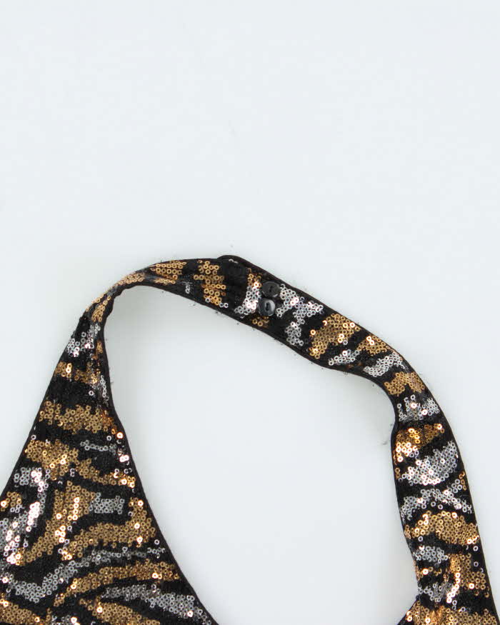 Vintage Women's 1990s Bianca Nygard Sequined Halterneck Party Top - L