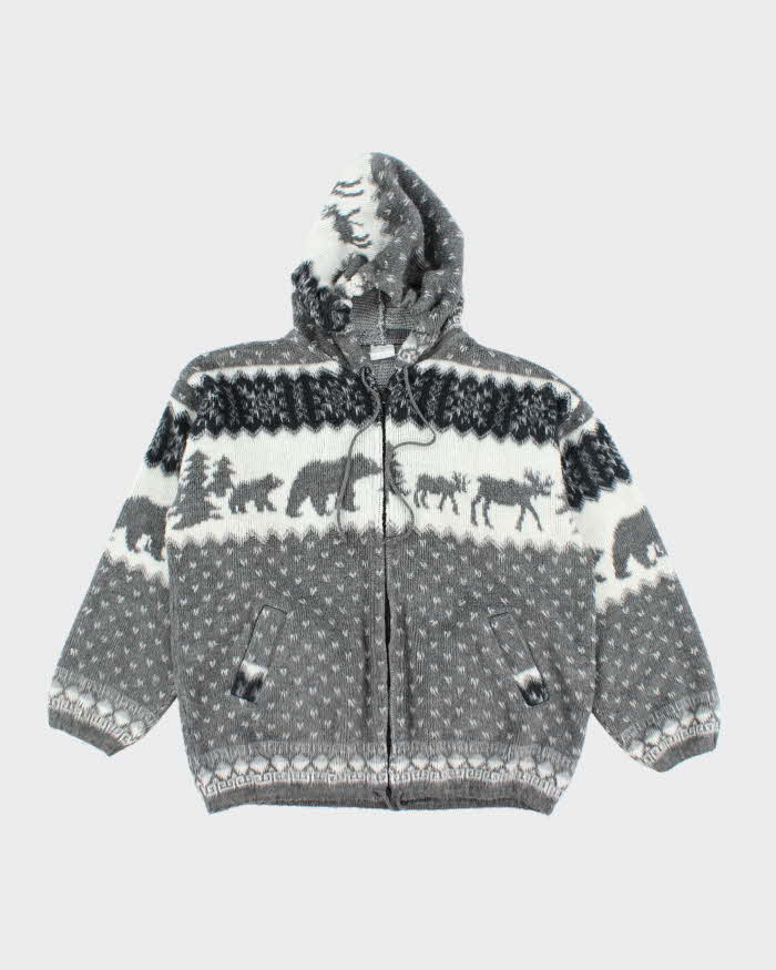 Vintage Women's Animal Printed Zip Up Wool Knit Hoodie - L
