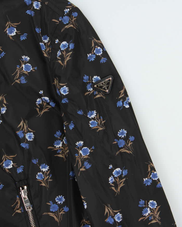 Vintage Women's Prada Floral Print Classic Sleeve Badge Hooded Windbreaker - L