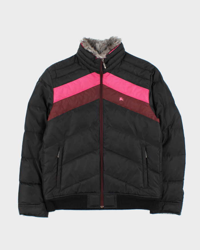 Vintage Women's Y2K 00s Burberry Black Label Down Filled Nova Check Lined Fur Trim Collared Puffer Jacket - M