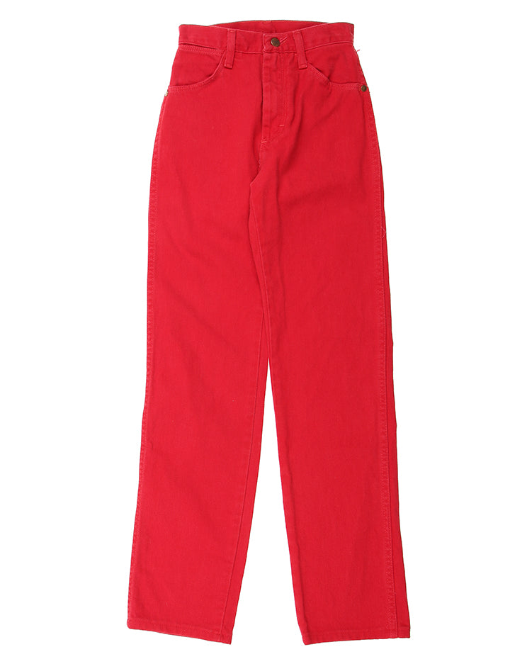 Vintage Wrangler high waist denim jeans in red with five pockets.