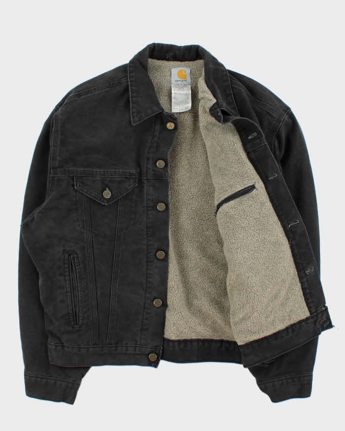 Vintage Y2K 00s Carhartt J233 Sandstone Sherpa Lined Made In USA Workwear Trucker Jacket - M