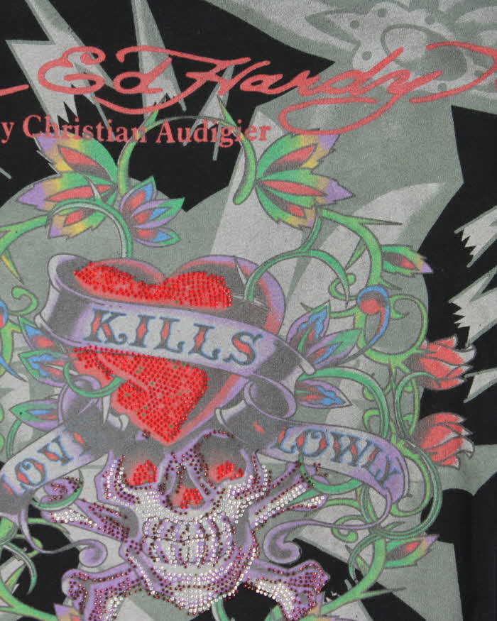 Vintage Y2K 00s Ed Hardy Rhinestone Graphic Long Sleeve T-Shirt - M