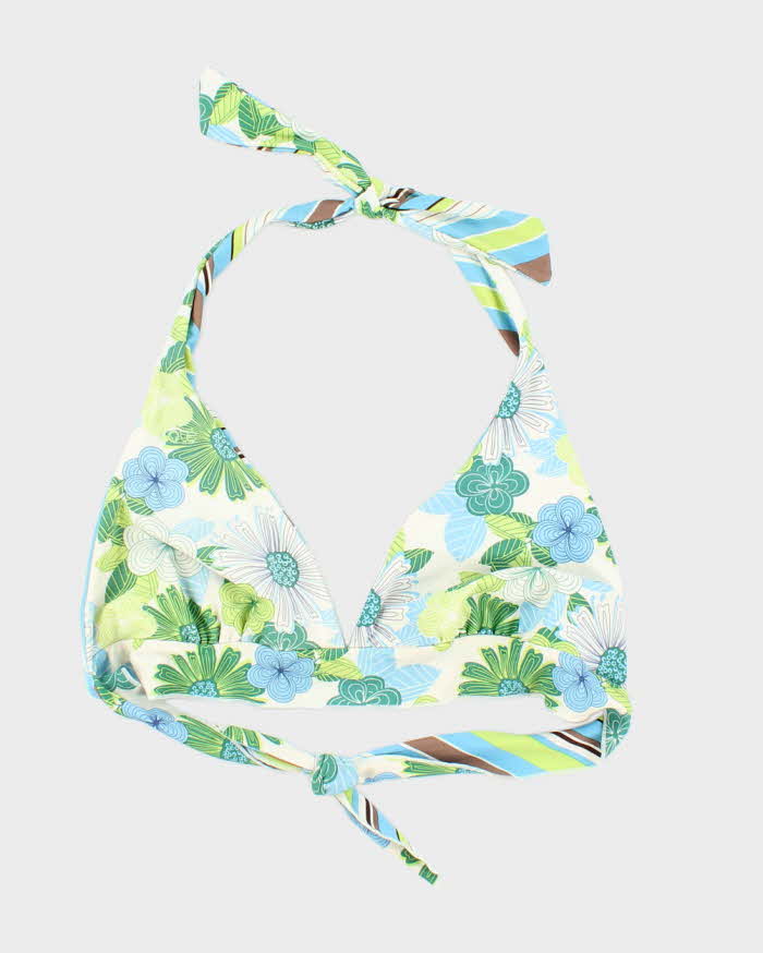 Vintage Y2k 00s Floral & Stripey Reversible Bikini Top - XL