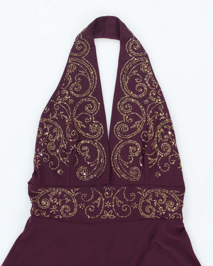 Vintage Y2k 00s Halter Neck Beaded Purple Dress - XS