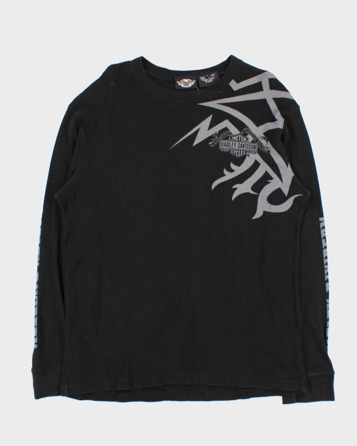Vintage Y2K 00s Harley Davidson Graphic Long Sleeve Waffle T-Shirt - L