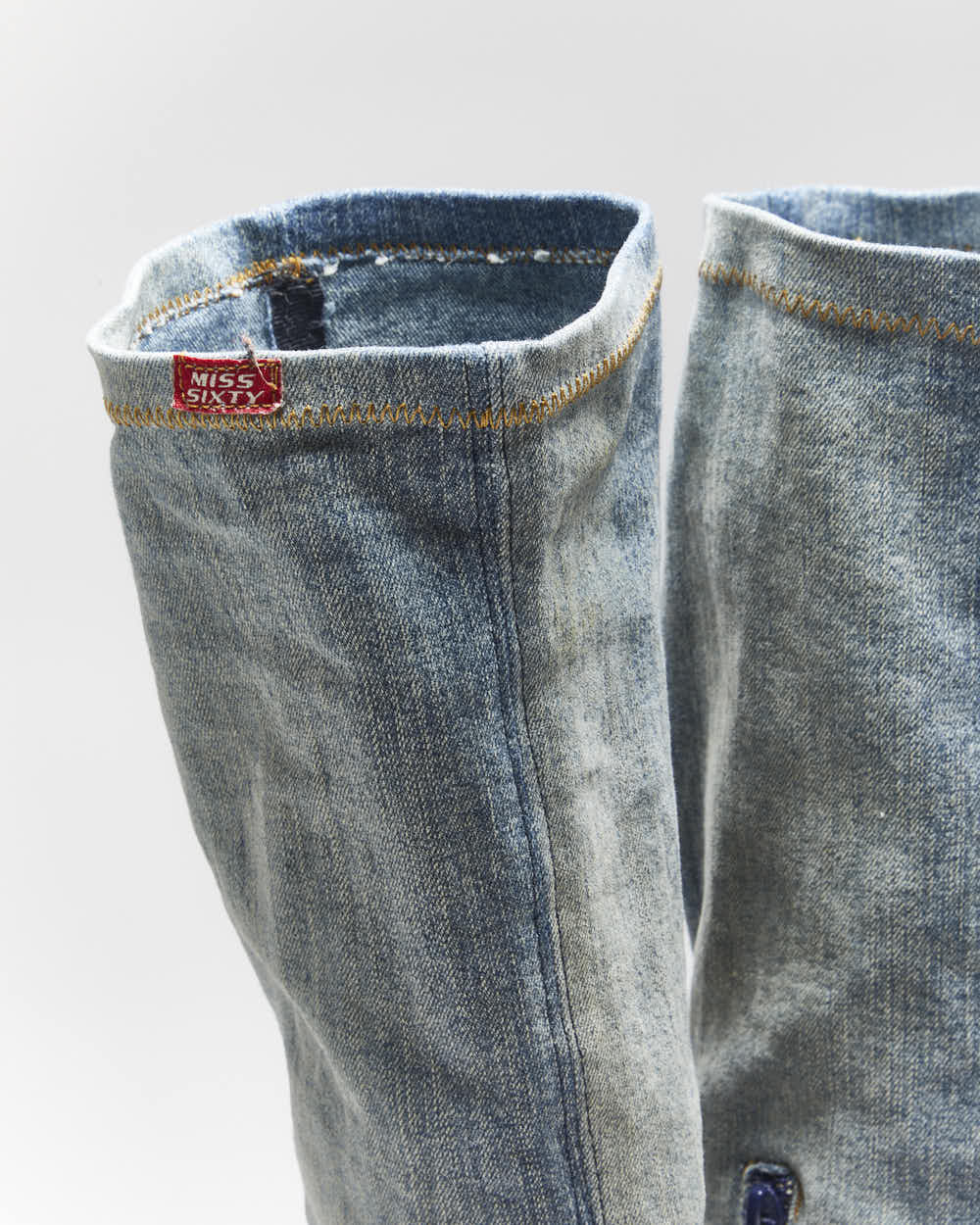 Vintage Y2K 00s Miss Sixty Knee High Denim & Leather Pointed Toe Boots - UK4