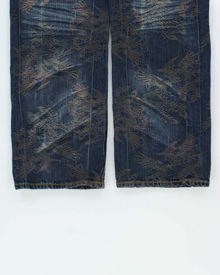 Vintage Y2k 00s Nikishi Denim Embroidered Wide Leg Jeans - W40 L32
