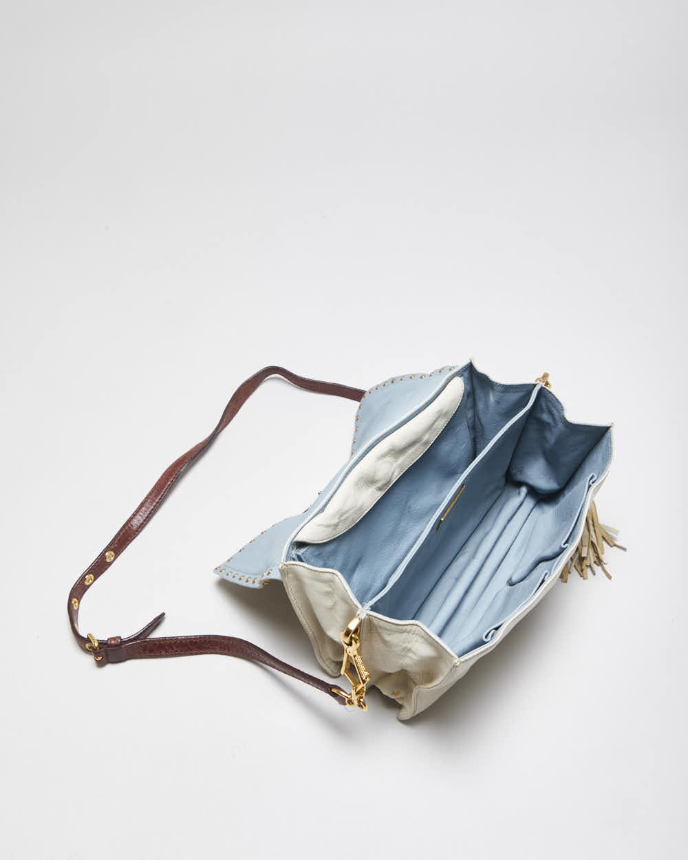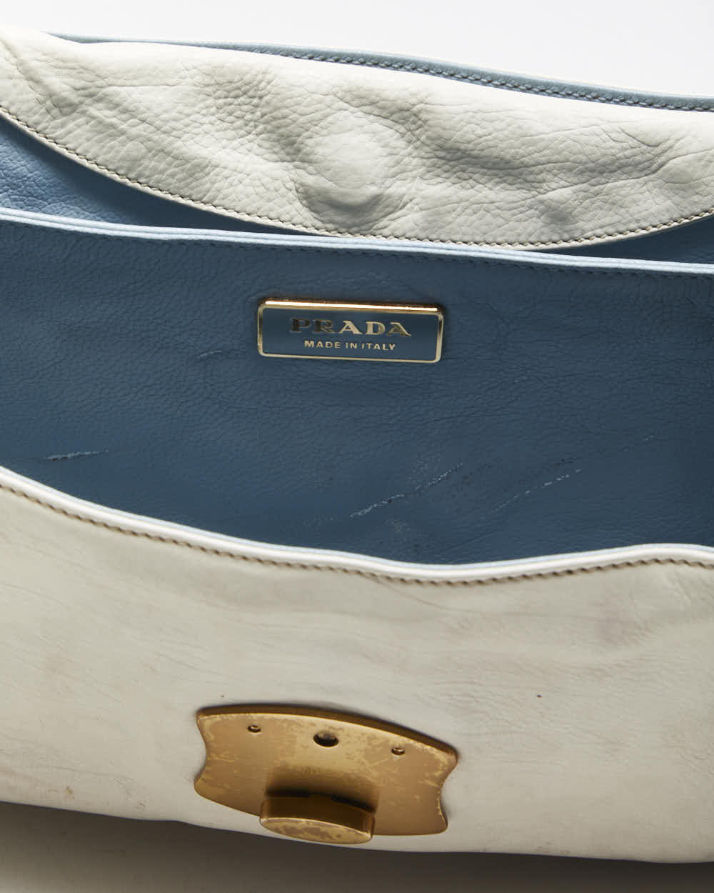 Vintage Y2K 00s Prada Studded Cream Vitello Leather Shoulder Bag