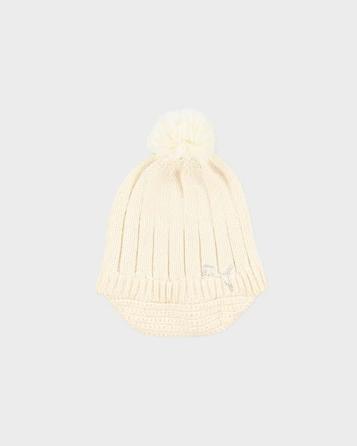 Vintage Y2K 00s Puma Diamante Cream Bobble Peaked Beanie - OS