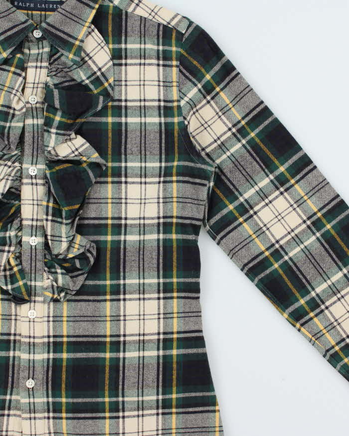 Vintage Y2K 00s Ralph Lauren Women's Tartan Ruffle Long Sleeve Blouse - S