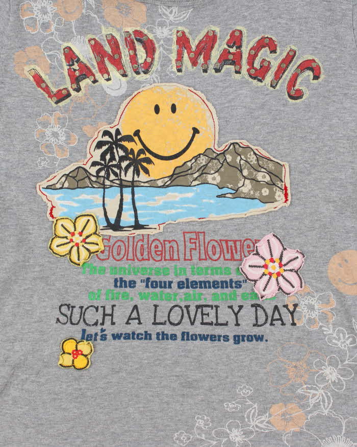 Vintage Y2k 00s Smiley Face Patchwork Long Sleeve Top - L