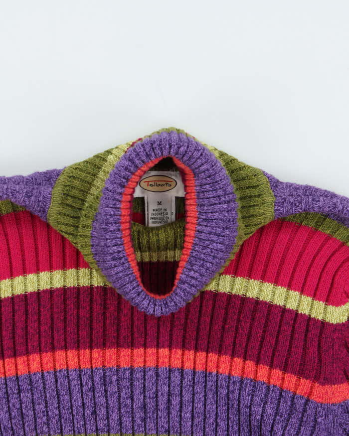 Vintage Y2k 00s Talbots Striped Roll Neck Jumper - M