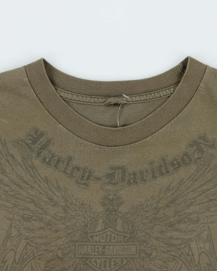 Vintage Y2K 2003 Harley Davidson Khaki Alberta Crewneck T-Shirt - XXL