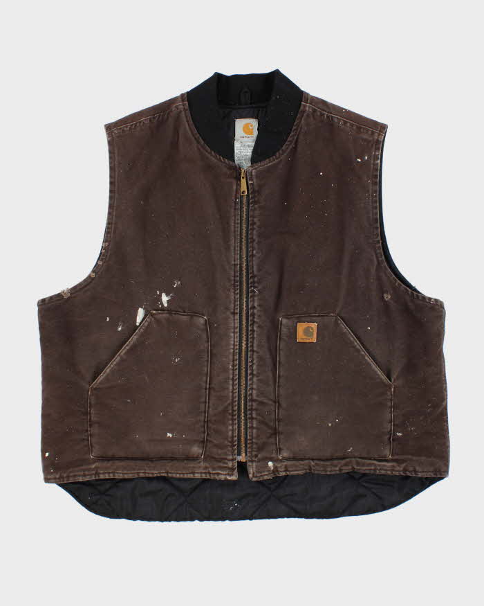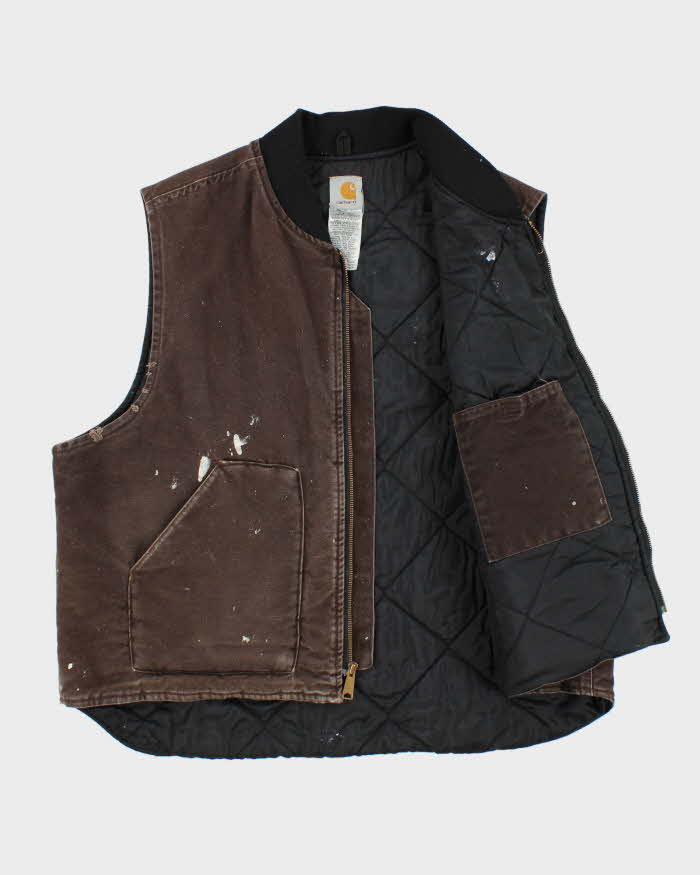Vintage Y2K 2006 Carhartt V02 DKB Arctic Quilt Distressed Canvas Workwear Gilet - XXL