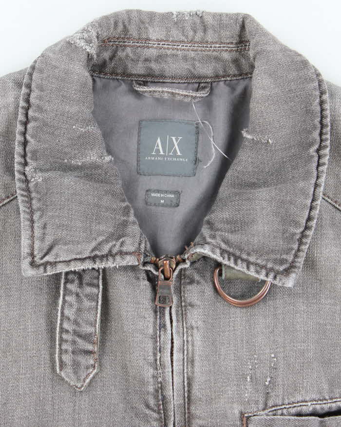 Vintage Y2K Armani Exchange Grey Denim Wash Zip Up Jacket - M