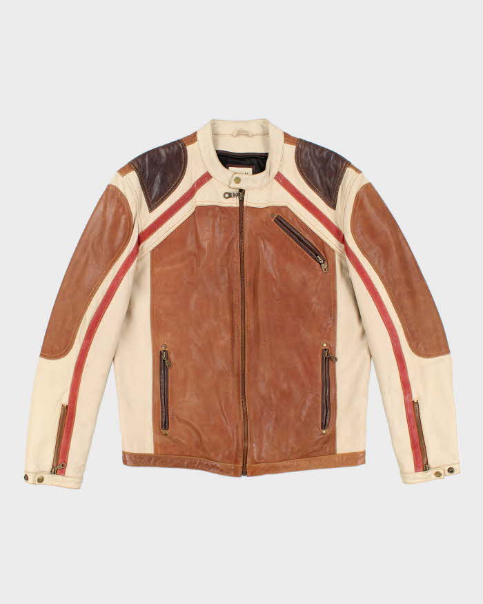 Vintage Y2K CMM Multi Tone Leather Biker Jacket - L