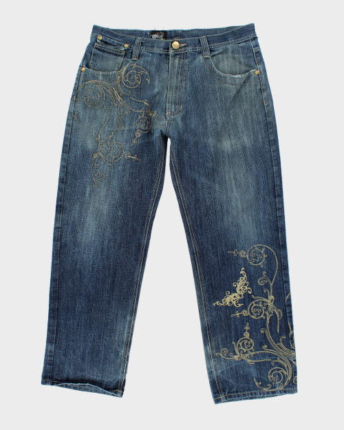 Vintage Y2K DELF Embroidered Wide Leg Dark Wash Jeans - W36 L30