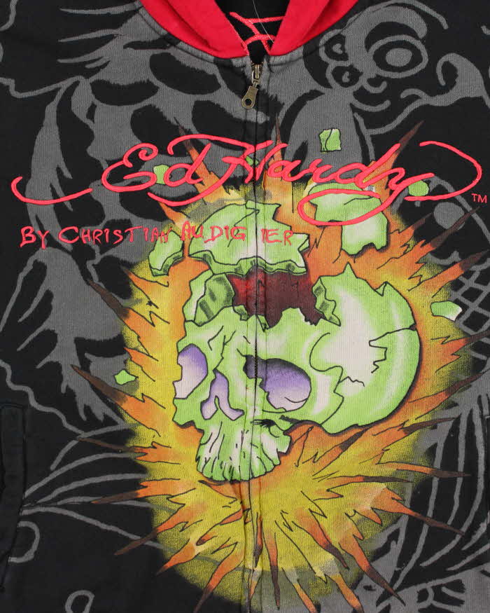 Vintage Y2K Ed Hardy All Over Print Zip Up Hoodie - XXL