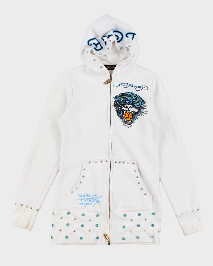 Vintage Y2K Ed Hardy Sequined Graphic Print Zip Up Hoodie - XL