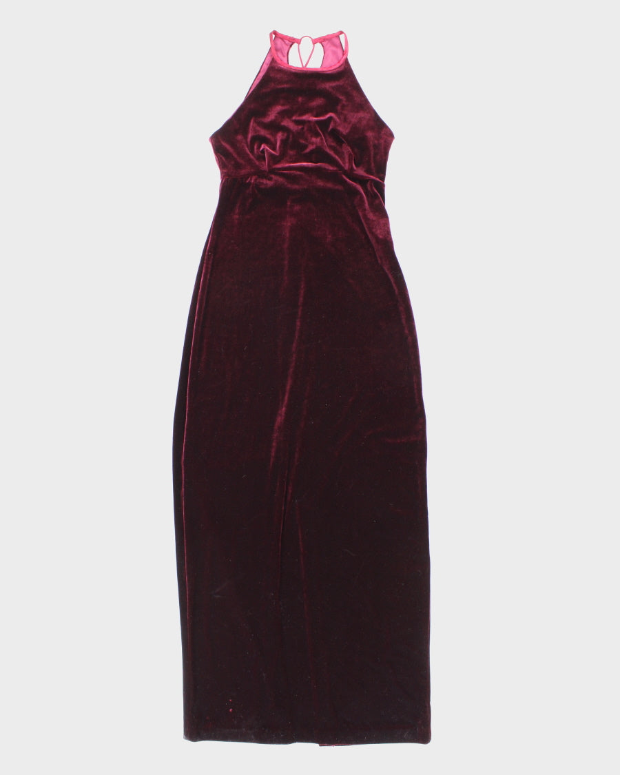Womens 1990s Deep Burgundy Velvet Halter Evening Maxi Dress - S