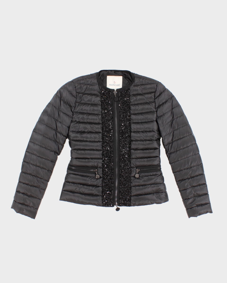 Womens Black Beaded Moncler Puffer Jacket - XS