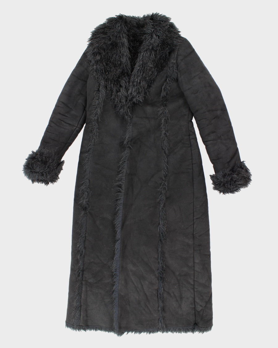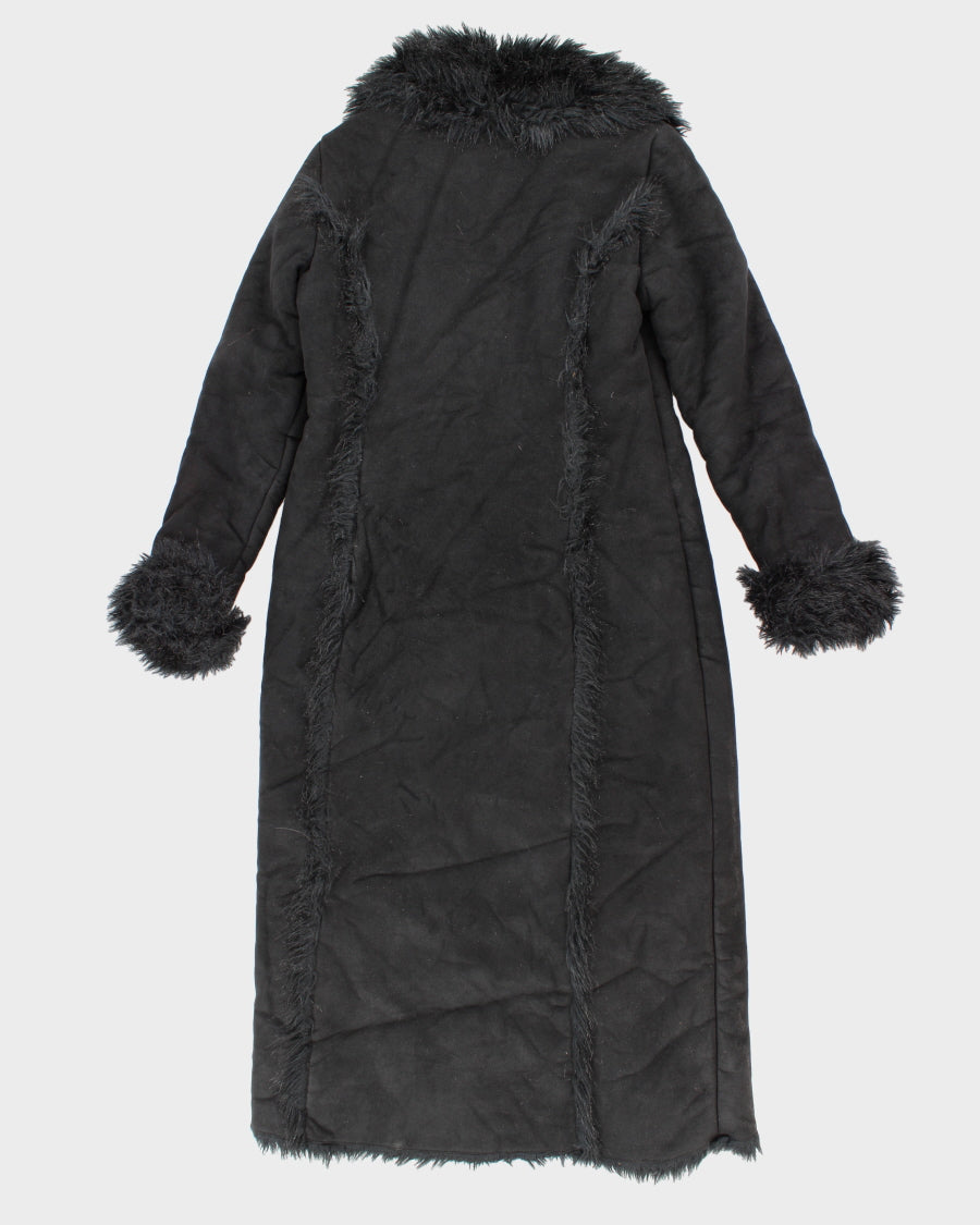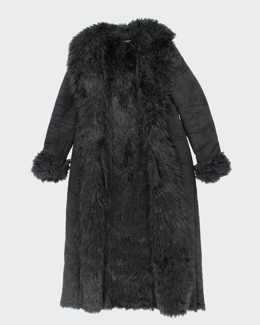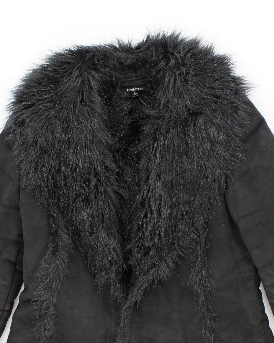 Womens Black Bebe Faux Suede and Fur Long Coat - L