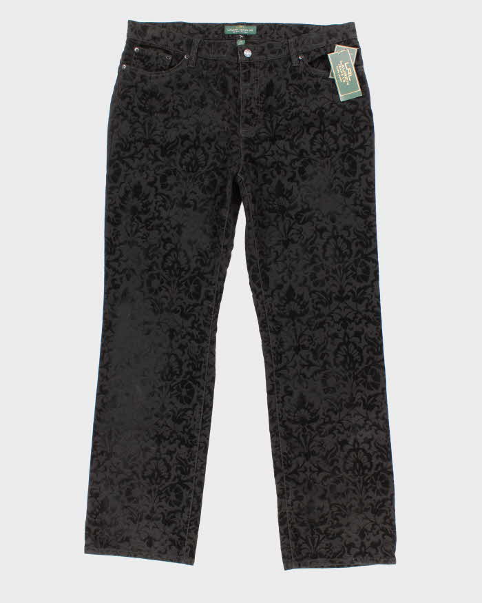 Womens Black Velvet Floral Pattern Ralph Lauren Trousers - M