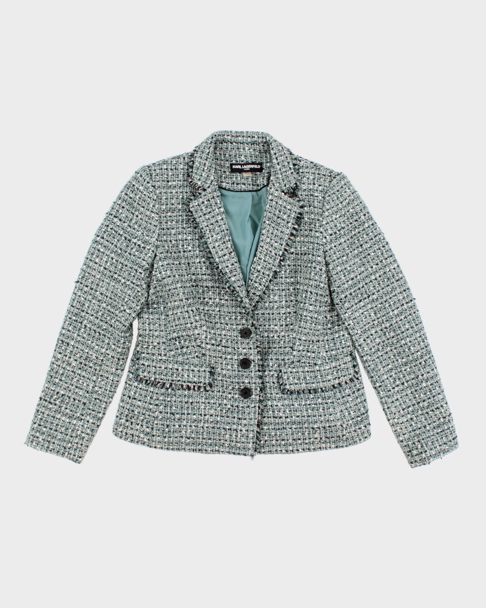 Women's Karl Lagerfeld Buckled Tweed Bouclé Blazer Jacket - M
