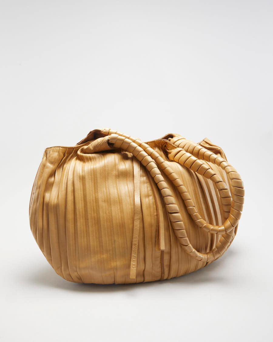 Y2K 00s Giorgio Armani Pleated Leather Hobo Bag - O/S