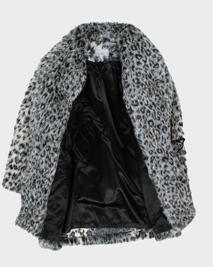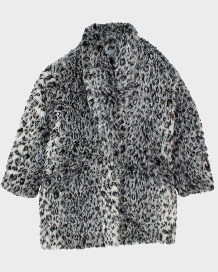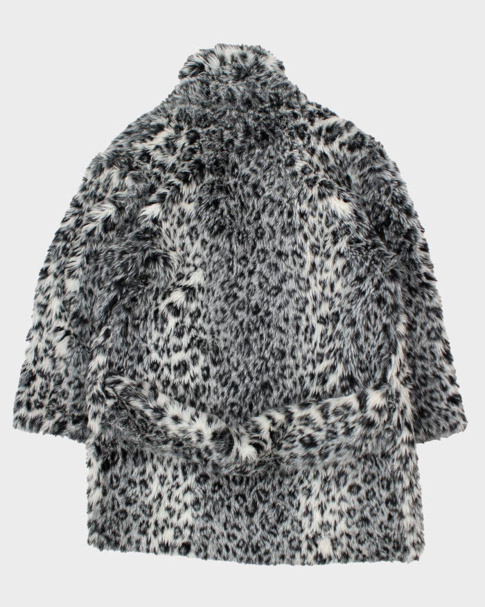 Y2k 00s Le Chateau Leopard Print Faux Fur Coat - L