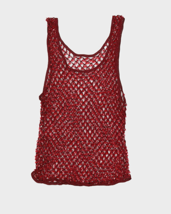 Y2K 00s Maroon Sequin Crochet Vest Top - XS/S