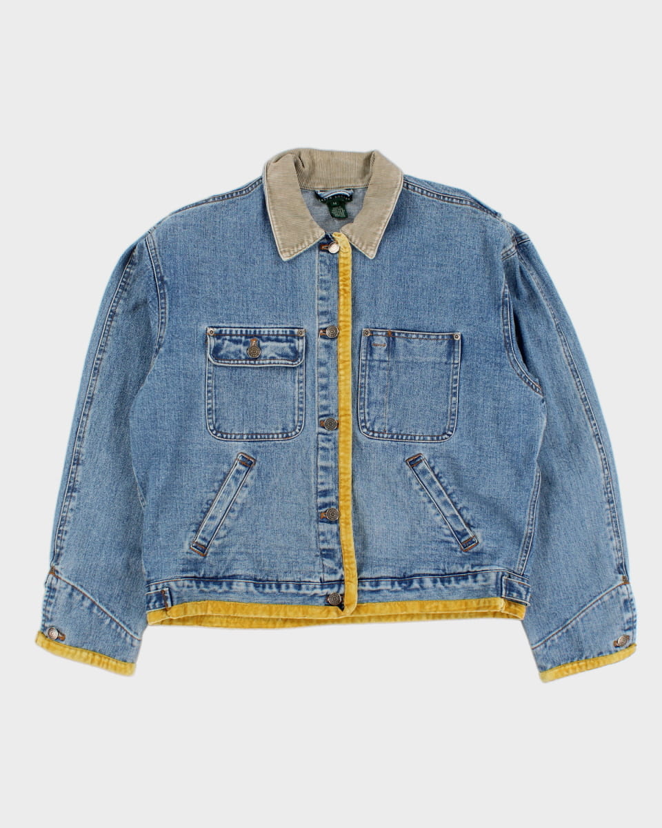 Y2K 00s Ralph Lauren Corduroy Collared Velvet Detailed Denim Jacket - M