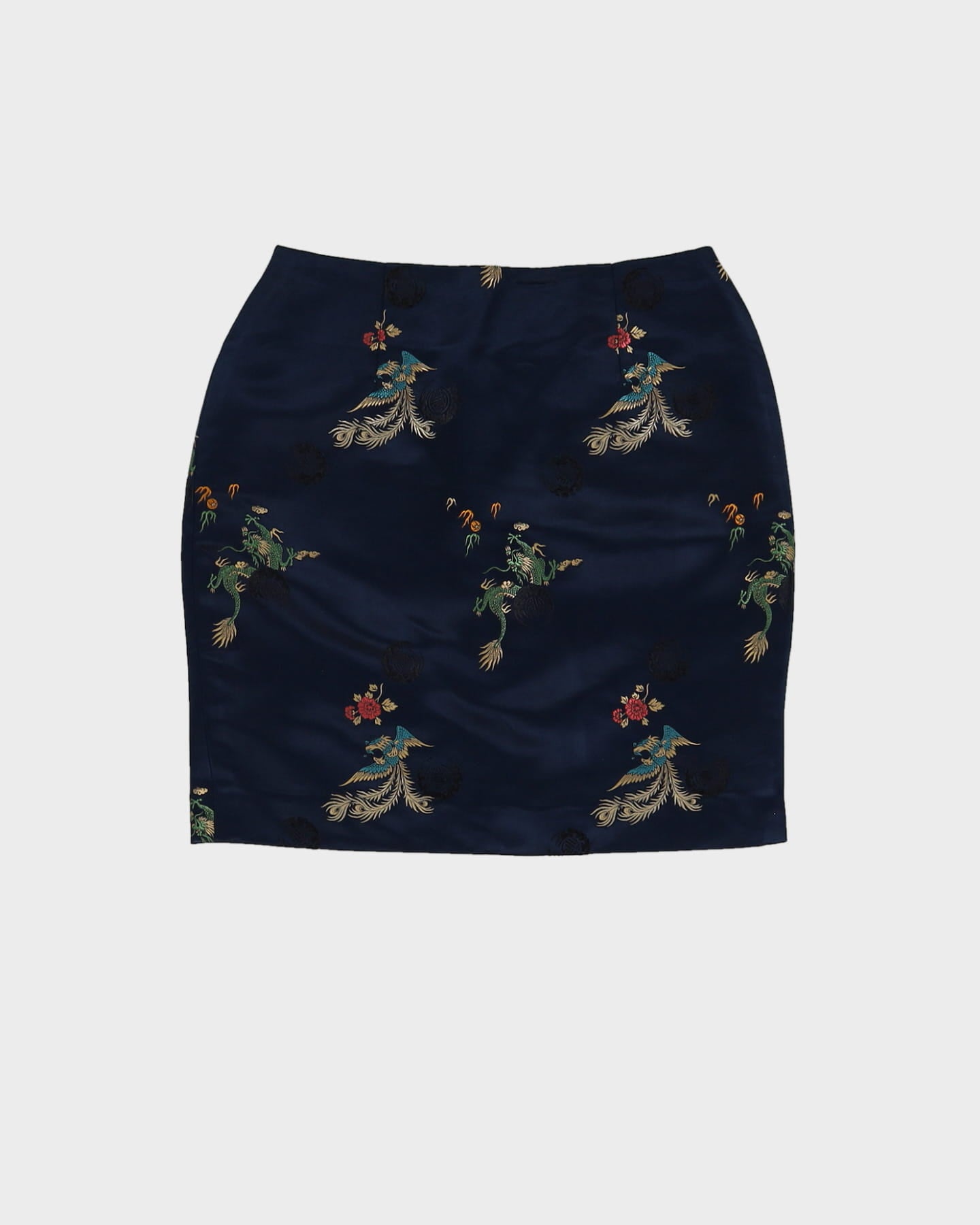 Y2K Navy Blue Brocade Mini Skirt - XS