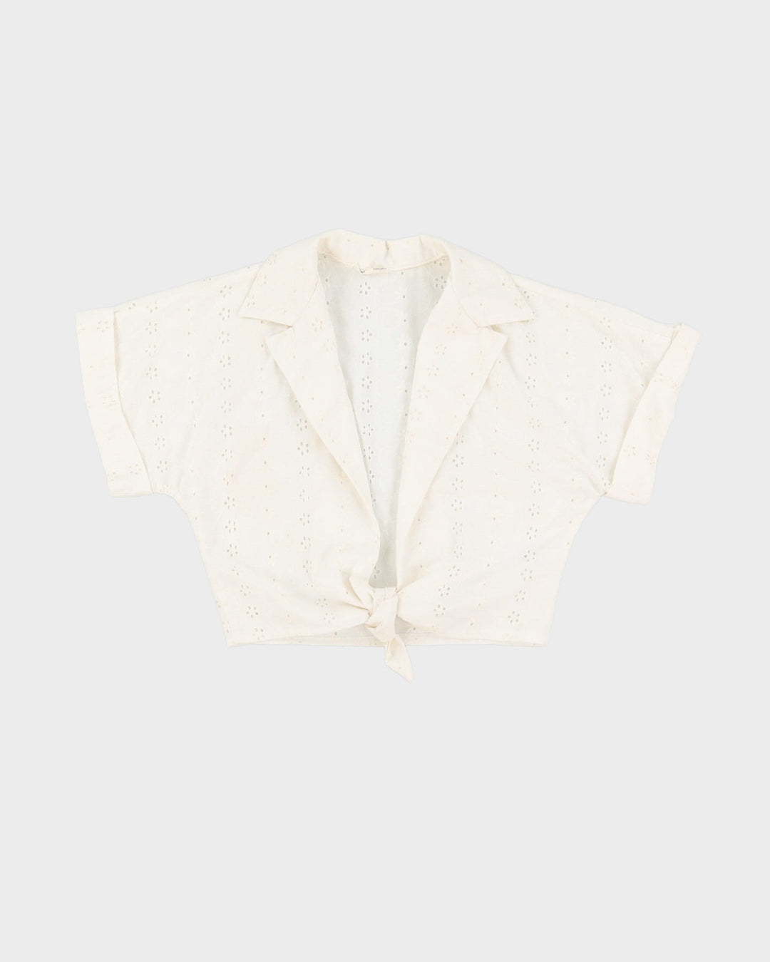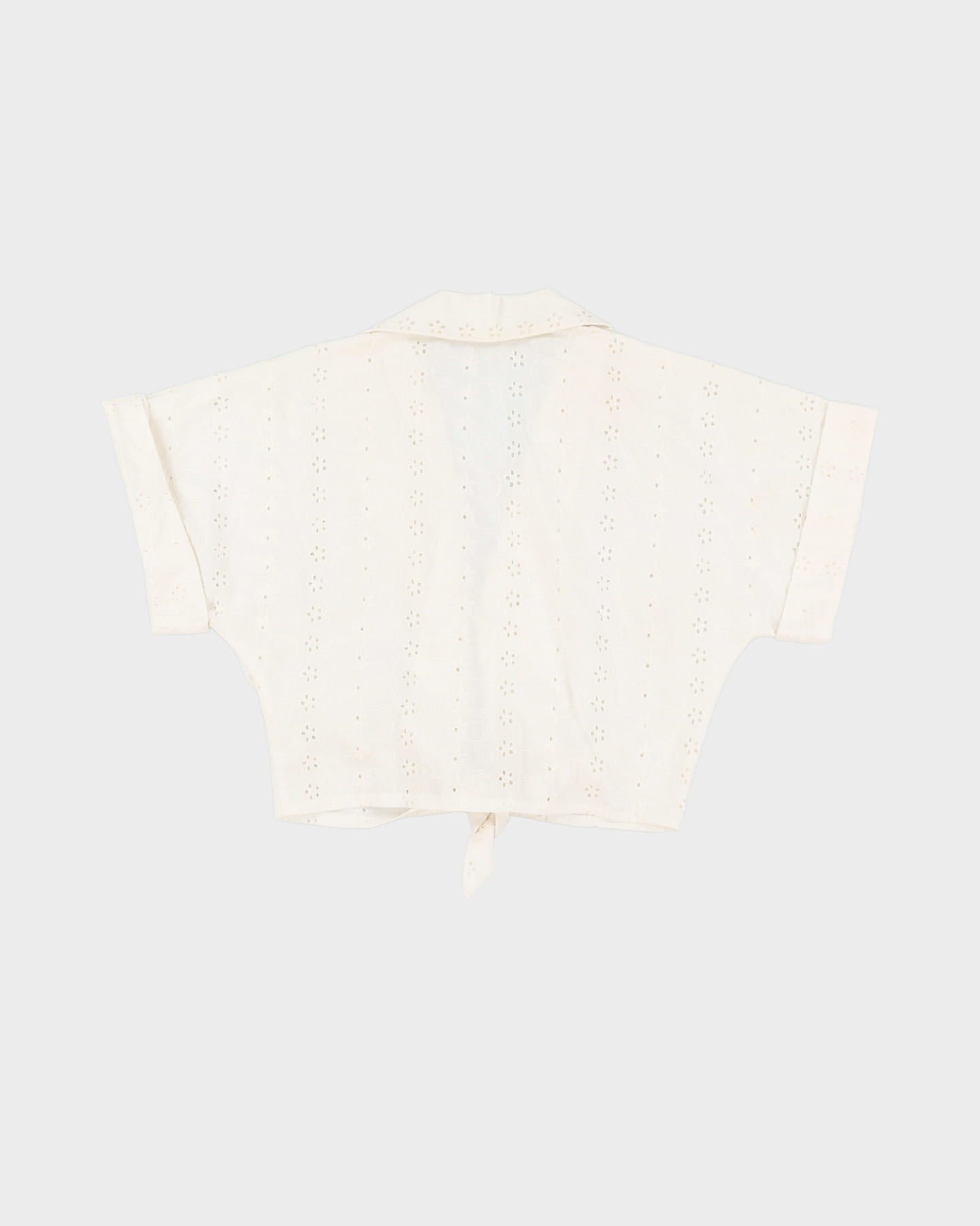 Y2K White Lace Tie-Front Cropped Top - S